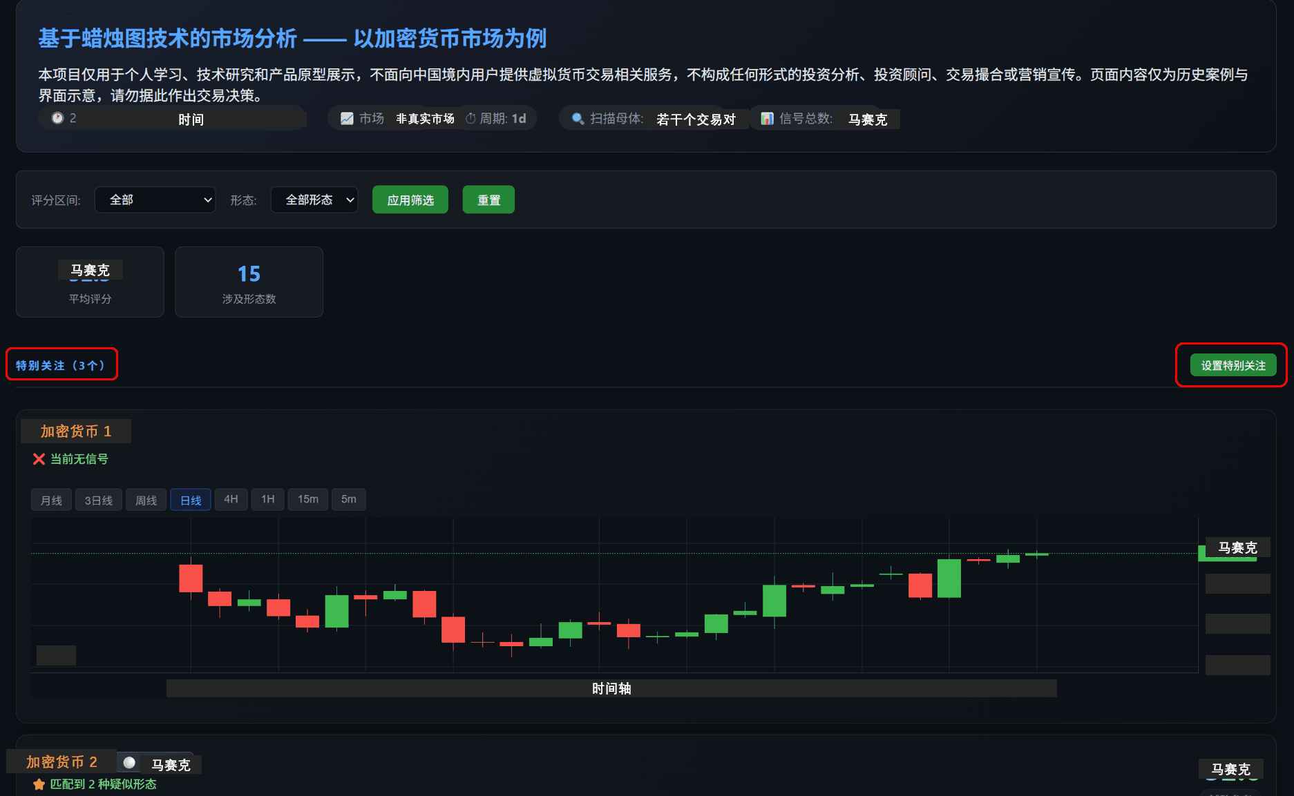 用户可以通过交互按钮自行选择需要关注的条目。被选定的项目会始终置于报告顶部,无论当前 K 线是否识别出明确形态。